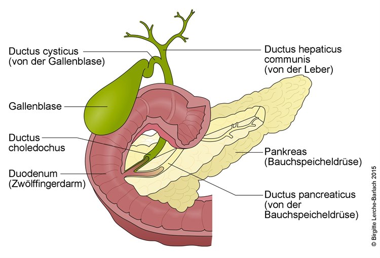 In der gesunden Bauchspeicheldrüse werden Enzyme gebildet, die im Darm Nahrungsbestandteile (v. a. Fette) aufspalten und daher für die Verdauung sowie die Aufnahme verschiedener Vitamine aus der Nahrung sehr wichtig sind (sog. exokrine Funktion des Pankreas). Die sog. Beta-Zellen der Bauchspeicheldrüse produzieren zudem das Hormon Insulin, das dafür sorgt, dass der Zucker aus dem Blut in die Körperzellen aufgenommen wird (sog. endokrine Funktion des Pankreas).