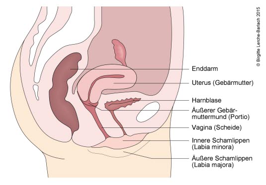 Die Gebärmutter (Uterus) ist etwa so groß wie eine Birne und wiegt zwischen 40 und 70 Gramm. Die Gebärmutterwand besteht aus einer etwa 1 cm dicken Muskelschicht und ist innen mit Schleimhaut ausgekleidet. Ein Teil dieser als Endometrium bezeichneten Schleimhaut wird regelmäßig während der Menstruation abgestoßen. Nach den Wechseljahren verkümmert die Gebärmutter und verliert merklich an Umfang. Der Gebärmutterhals stellt die Verbindung zwischen Scheide und Gebärmutterkörper dar, er ist mit einer speziellen Drüsenschleimhaut ausgekleidet, um Infektionen daran zu hindern, bis in die Gebärmutter vorzudringen. Im Bereich des äußeren Muttermunds geht die Schleimhautverkleidung des Gebärmutterhalses in die glattere Schleimhaut der Scheide über. Diese Grenze wird als Transformationszone (TZ) bezeichnet, und in diesem stark begrenzten Bereich können Infektionen mit humanen Papillomaviren (HPV) zu Zellveränderungen und Krebsgeschwulsten führen. Der Abstrich zur Krebsfrüherkennung erfolgt in dieser Transformationszone.