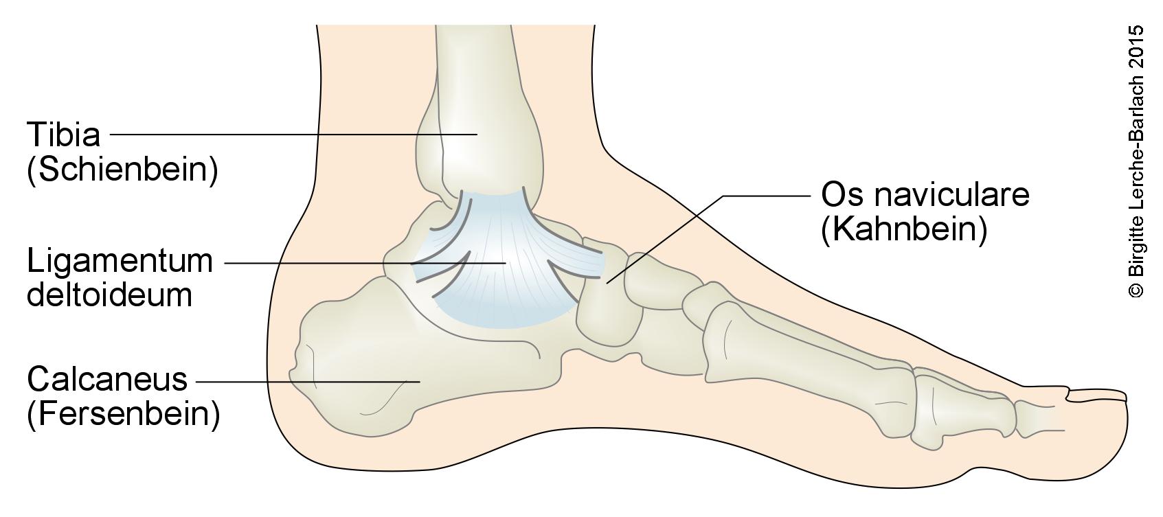 - Verletzungen des Bandes am Innenknöchel sind relativ selten.