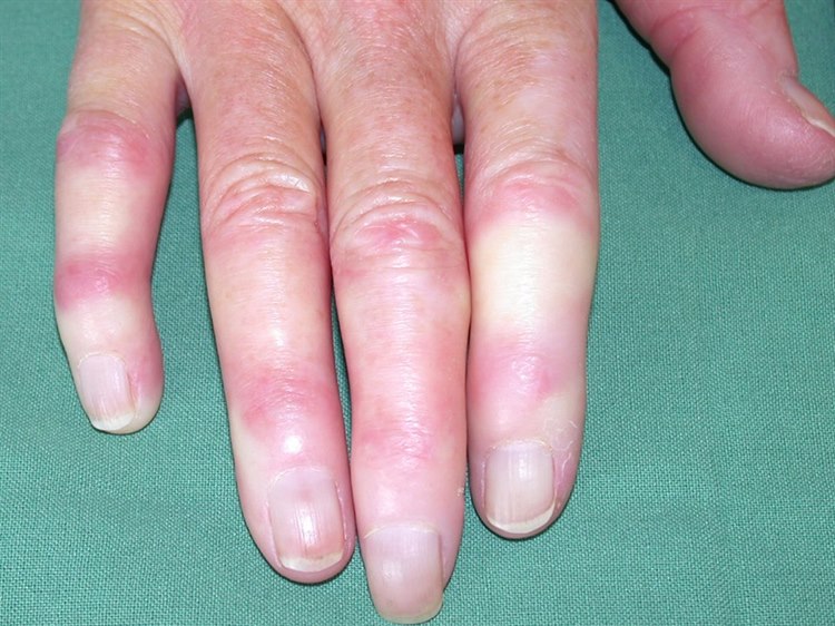 Das Raynaud-Syndrom kann auch auf einer Grunderkrankung mit Gefäßschädigung beruhen, häufig im Rahmen von rheumatologischen Erkrankungen.