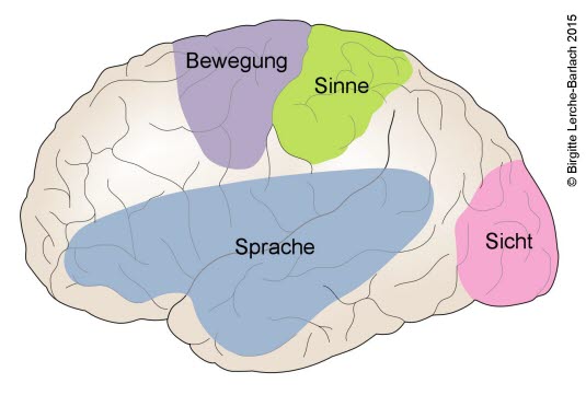 Das Gehirn lässt sich in mehrere Bereiche unterteilen, die jeweils für verschiedene Aufgaben verantwortlich sind. Die bei einem Schlaganfall auftretenden Symptome sind abhängig davon, welches Hirnareal von der Durchblutungsstörung betroffen ist.